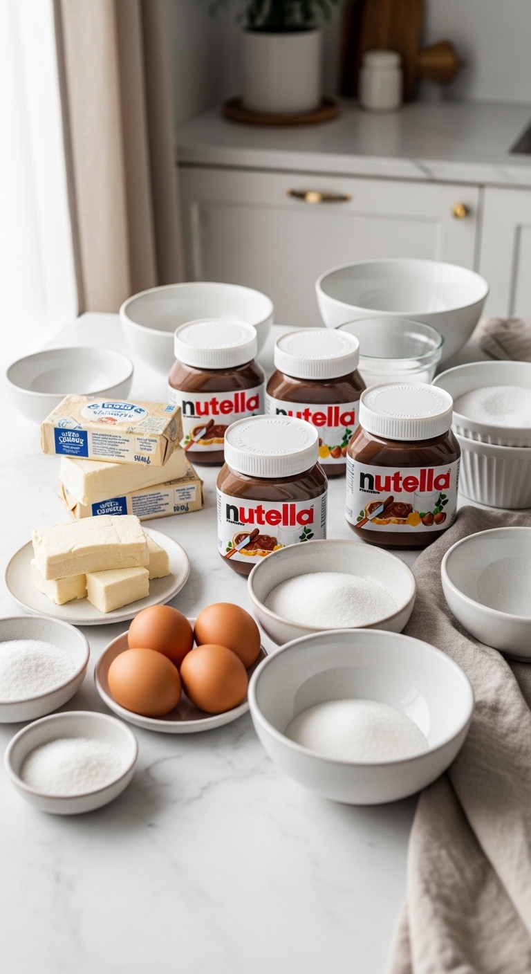 - Have 3/4 cup (150 g) granulated sugar, 2 large eggs at room temp, 1 cup (230 g) Nutella.
