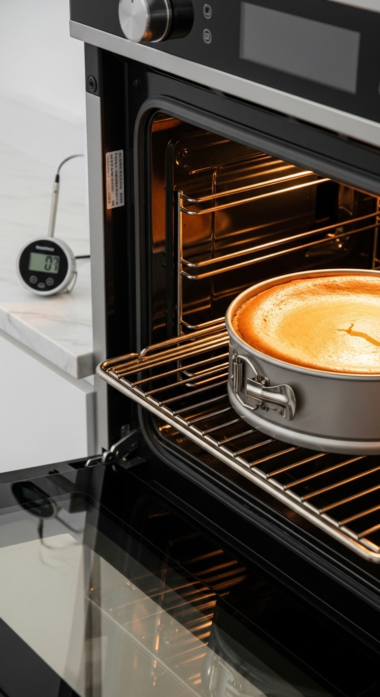 Bake low and slow. Oven temperature control and gentle cooling are crucial to make your cheesecake smooth and decadent.
