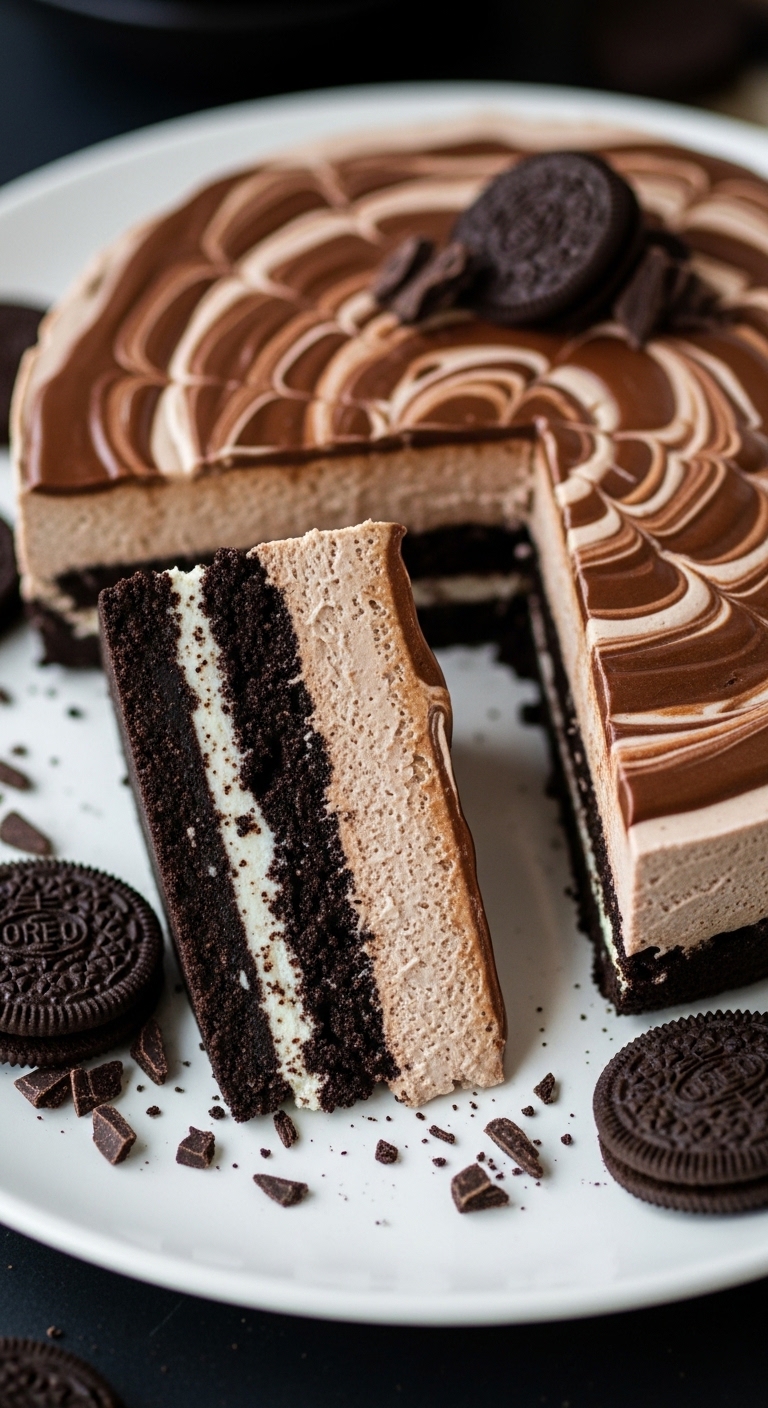 This fuss-free, silky cheesecake uses real whipped cream for a lighter finish and an Oreo crust for deep chocolate flavor. The texture is rich yet airy — perfect for when you want cheesecake without the oven.