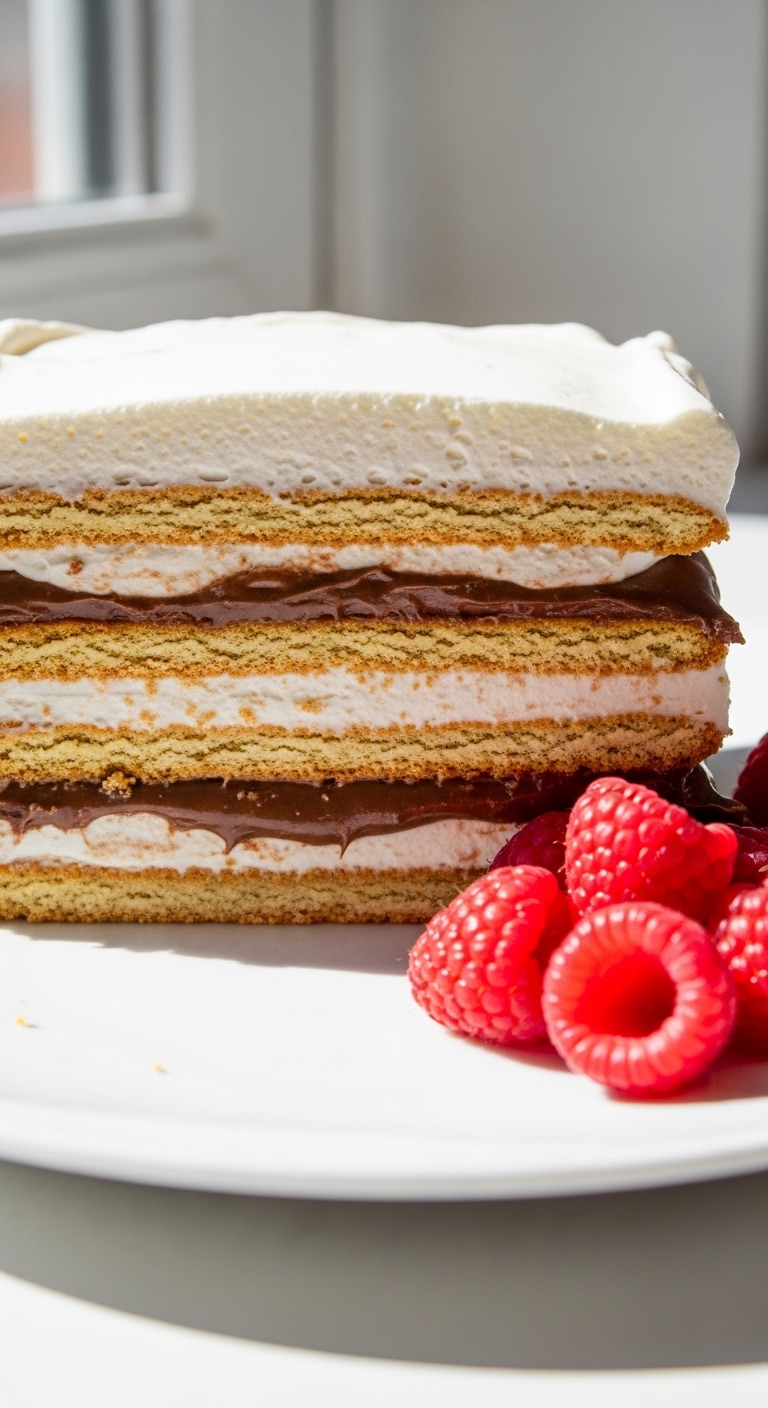 A 4-ingredient classic turned Nutella-forward: layers of chocolate crackers soften into cake-like sheets, while the filling tastes like a cross between eclairs and chocolate mousse. It’s a hands-off crowd pleaser.
