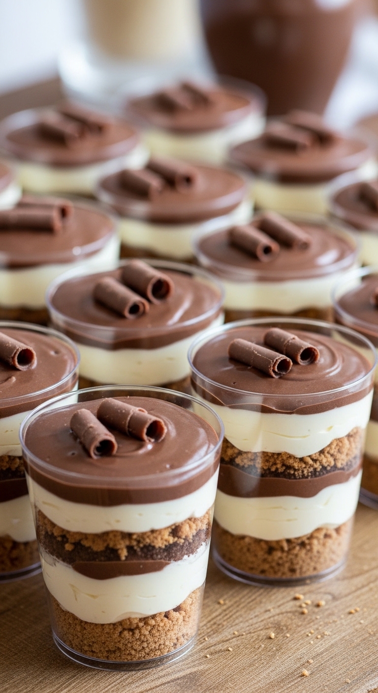 • Use chocolate graham crackers or chocolate wafers and a 9×13 glass dish for neat layers.