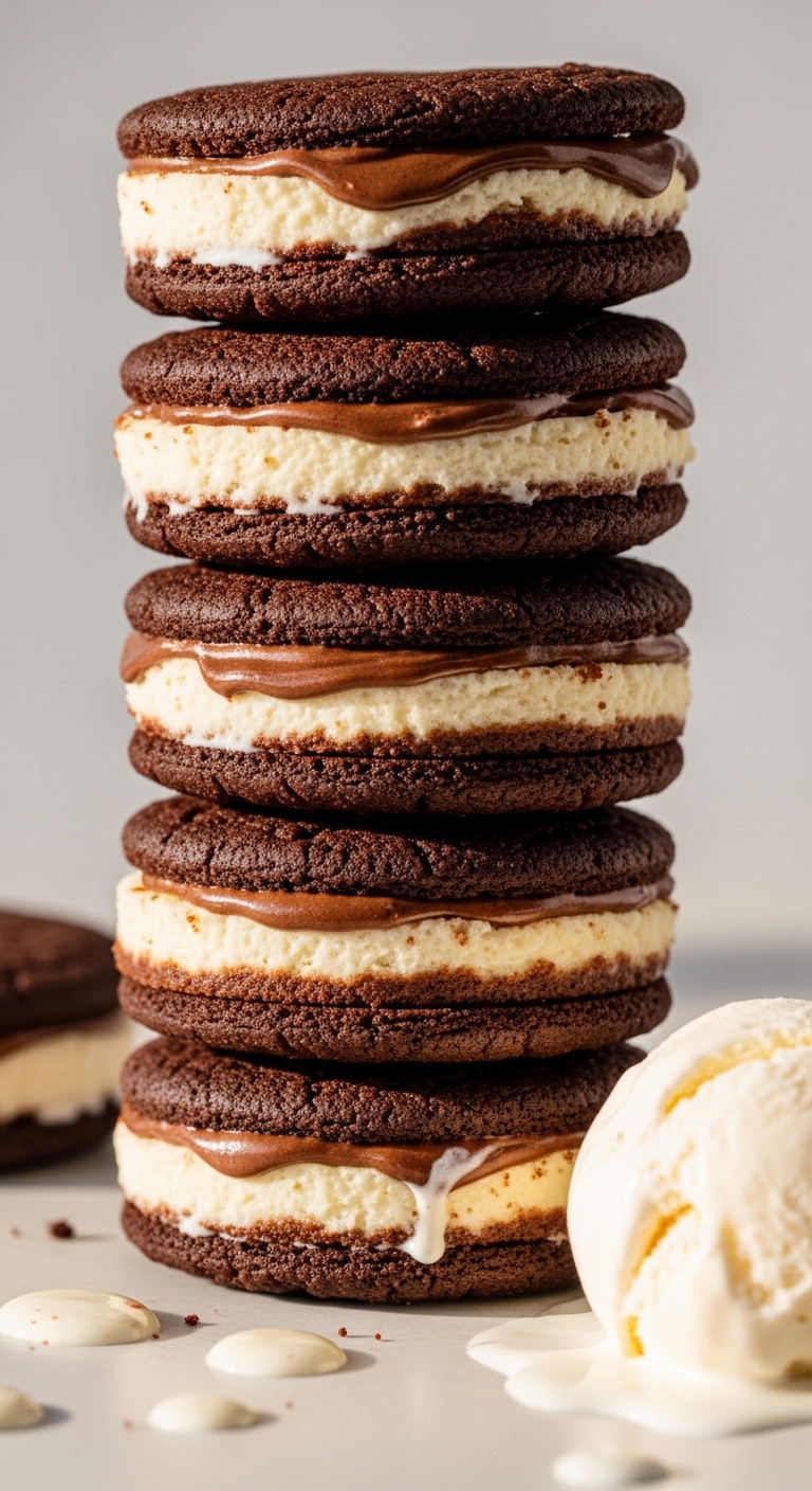 Make sandwich-style ice cream treats using Nutella cheesecake filling frozen between cookies for an indulgent frozen dessert.