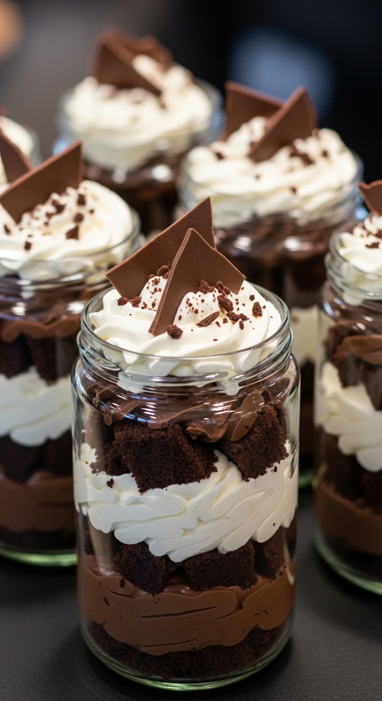 Layered trifles in jars are customizable, portable, and visually stunning. Alternate cake, mousse, and fruit for contrast. Great for potlucks.