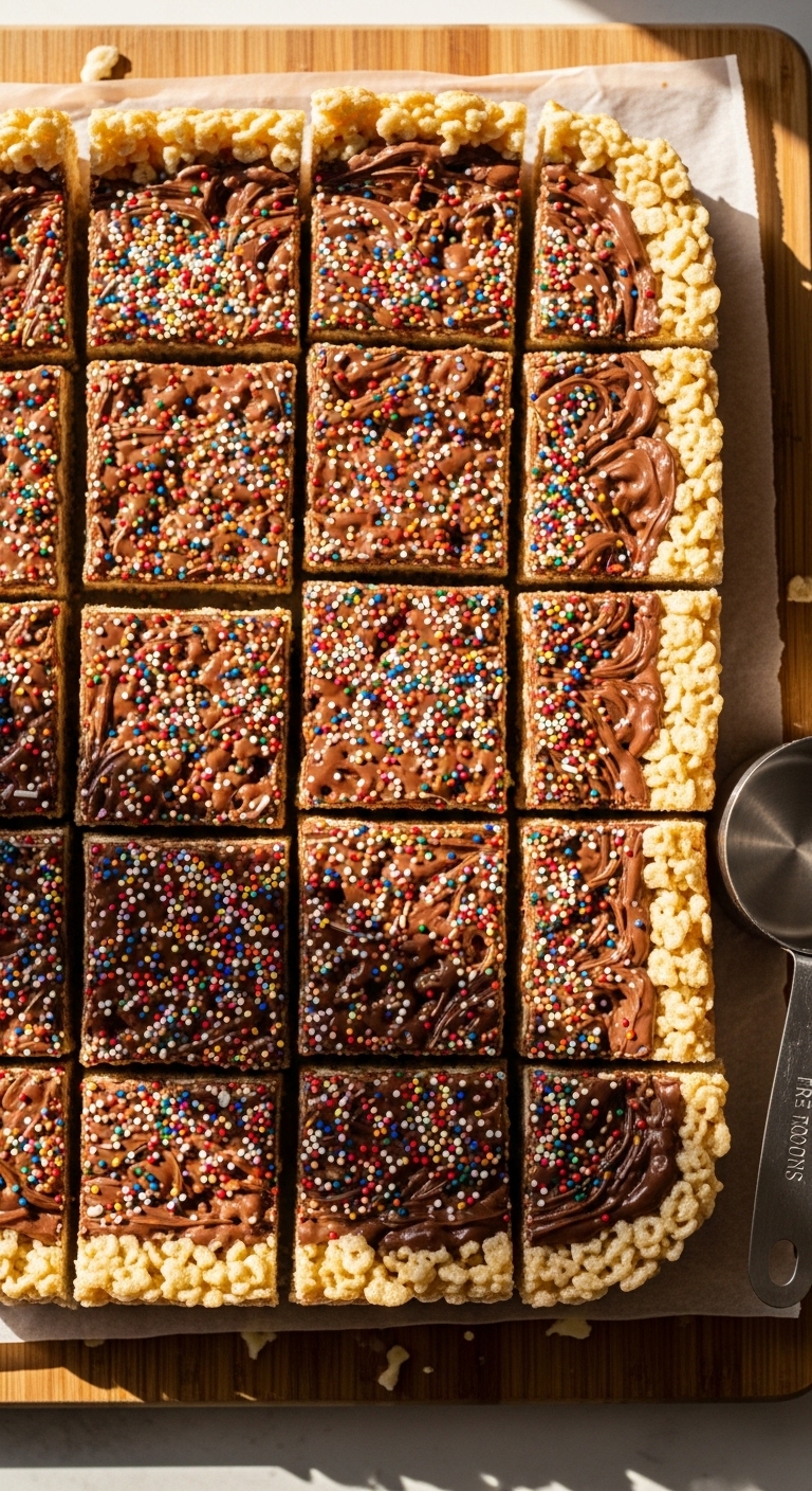 Quick, no-bake, and perfect for little helpers—these squares mix Nutella into sticky marshmallow rice krispies for a chocolate twist. Kids love pressing the mixture into the pan and decorating.